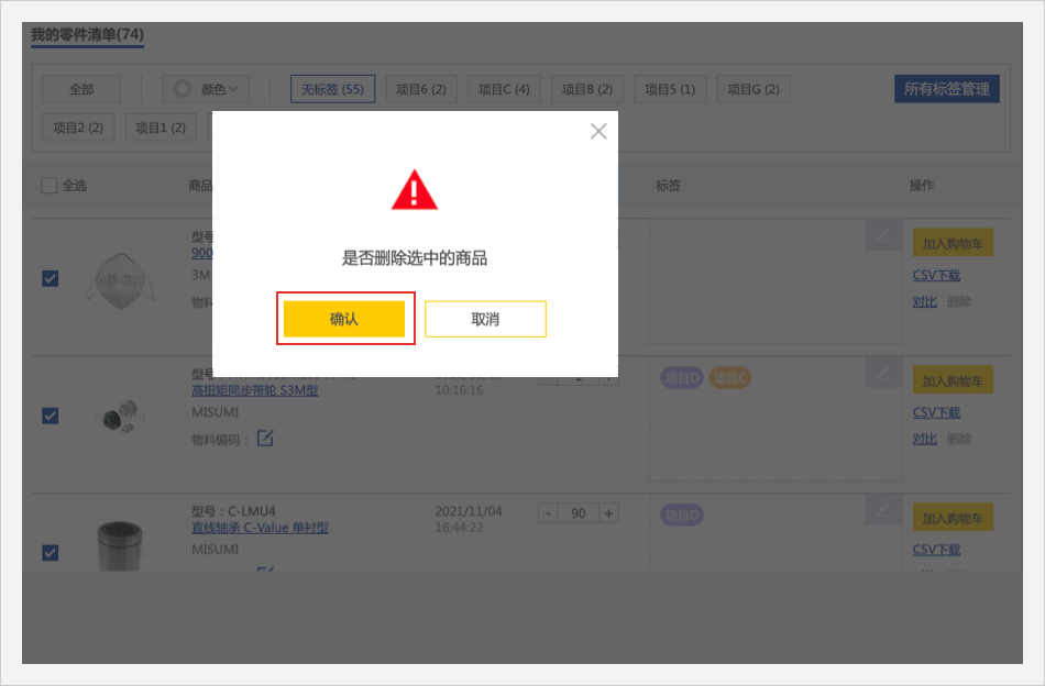 点击【确认】即可删除商品