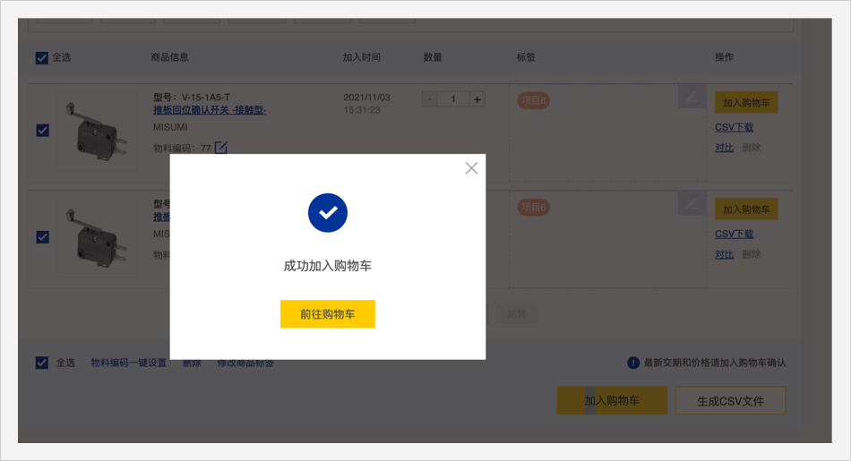 选择需要加入购物车的商品,点击【加入购物车】即可