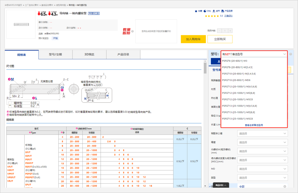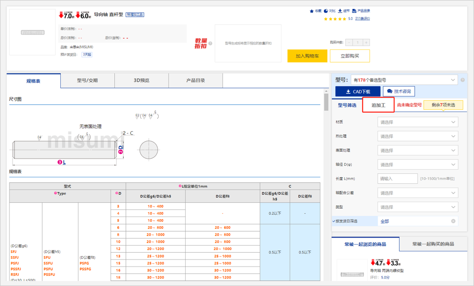 1.无米思米型号:在电子目录中查找商品,确认型号后加入购物车进行报价或订购。