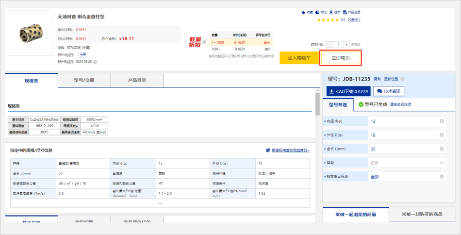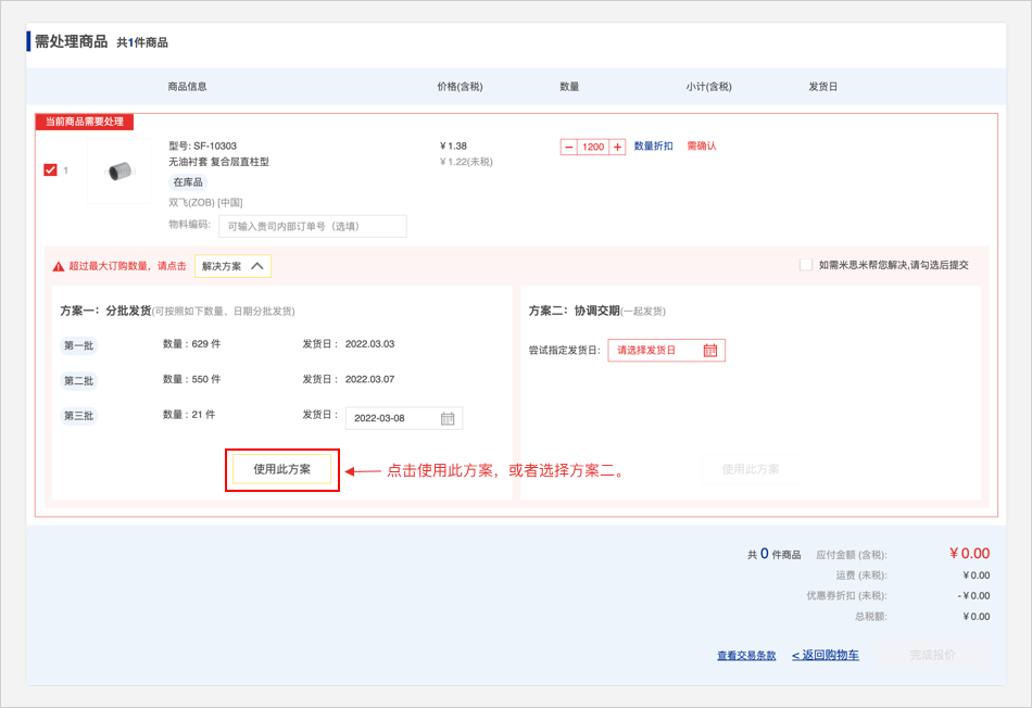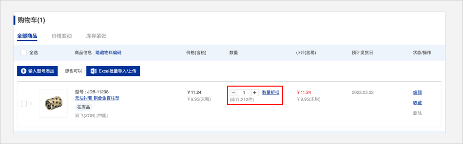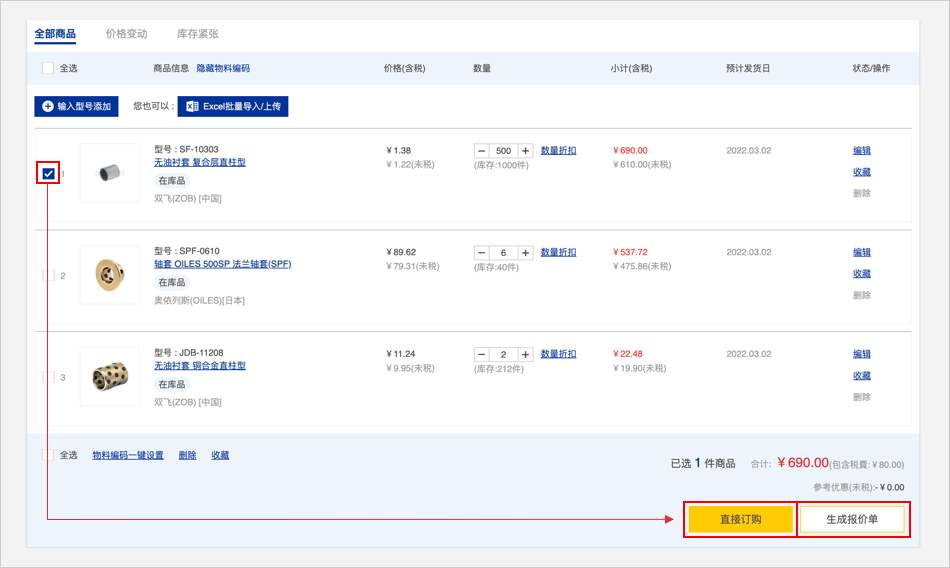 点击「直接订购」,可直接查看商品价格和交期,确认没有问题后可订购商品。