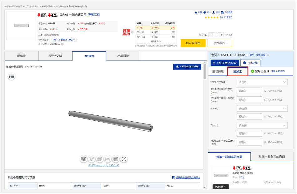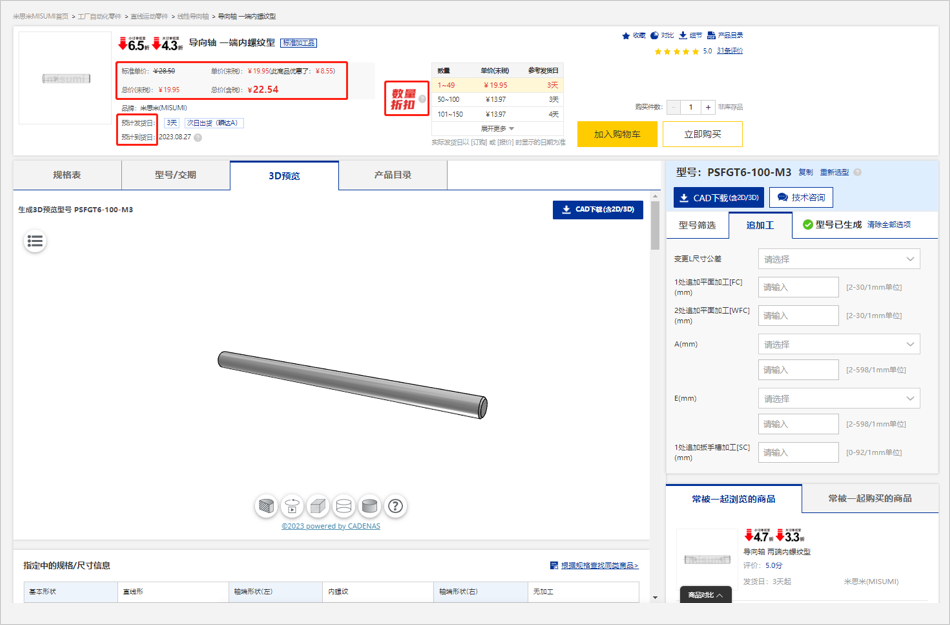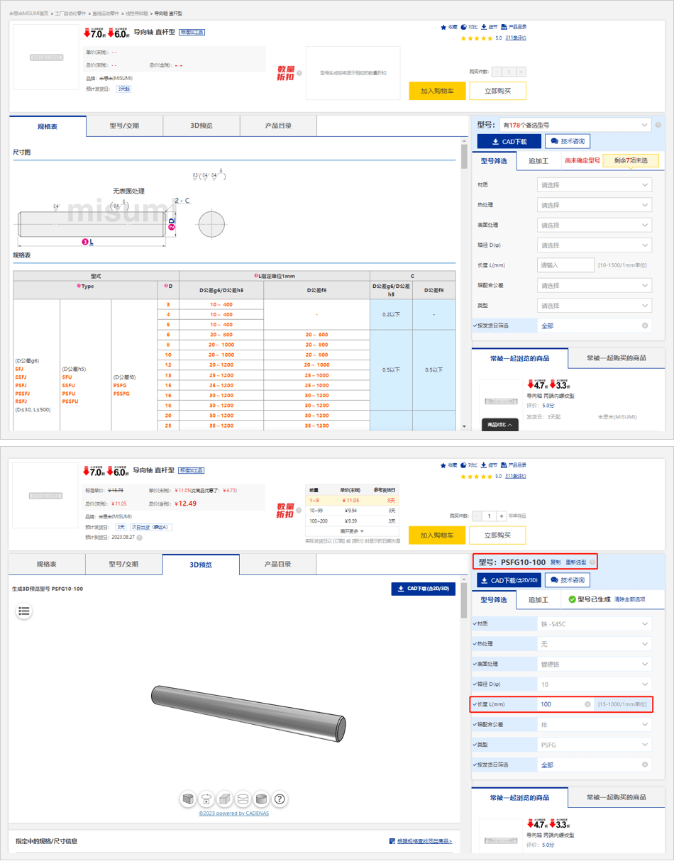 ※图例中所显示的价格信息均为样例,实际商品价格请在米思米网站上再次确认。