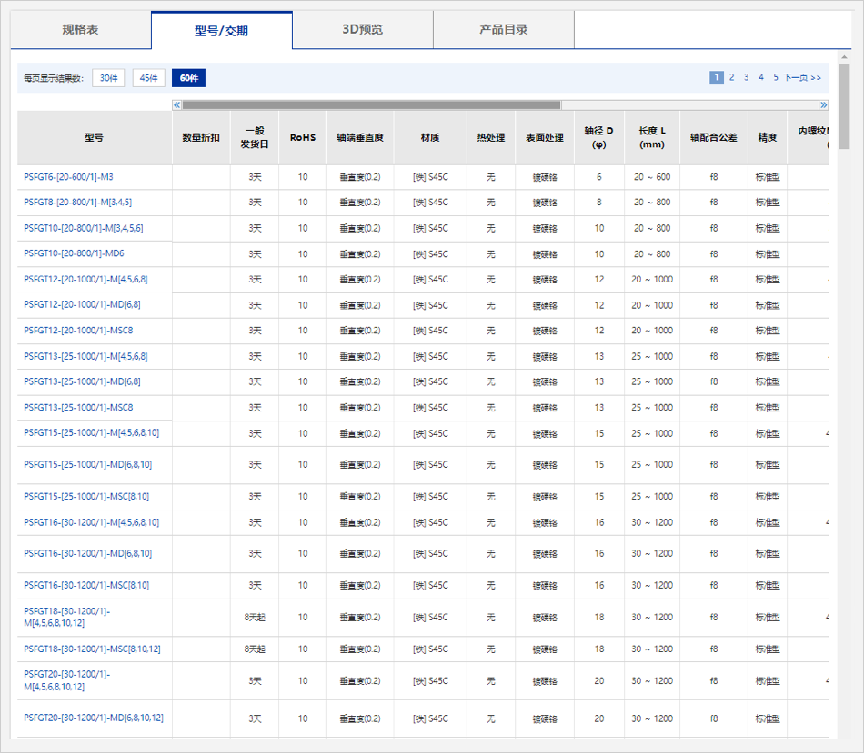 商品页面中,点击【型号/交期】可以查看一般发货日和商品参数