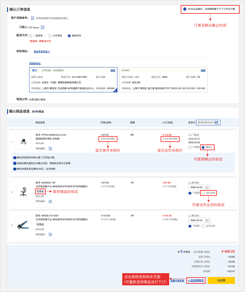 指定发货日:指定日期出货,指定的日期必须晚于最早发货日。