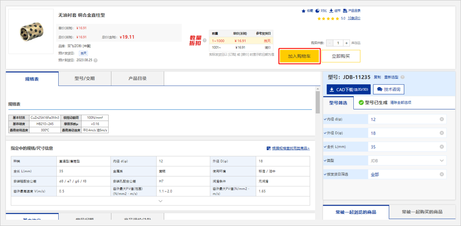※「加入购物车」按钮会在确定型号后才能使用。