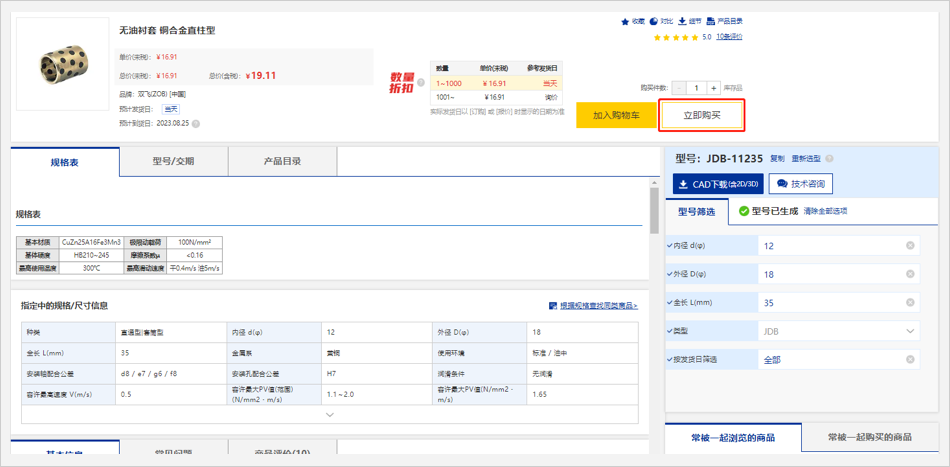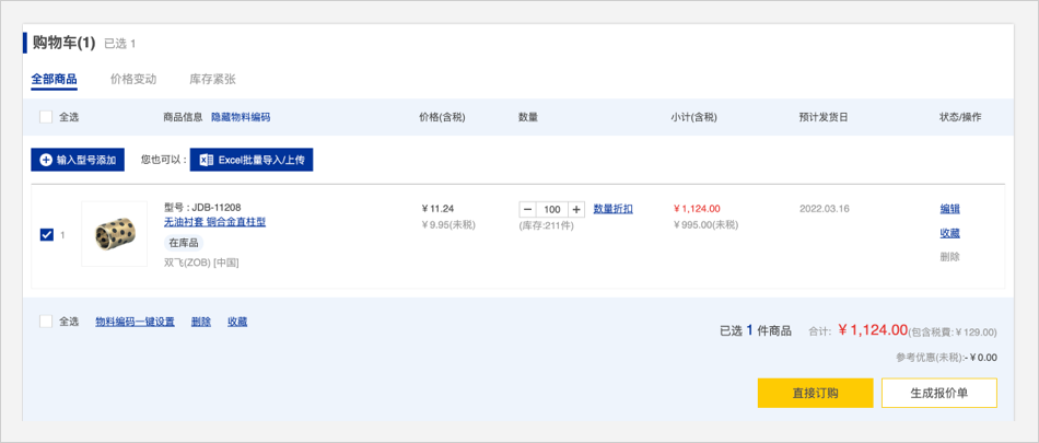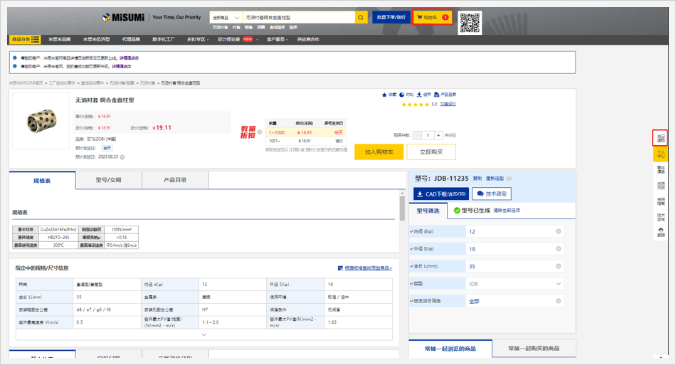 1.无米思米型号:在电子目录中查找商品,确认型号后加入购物车进行报价或订购。