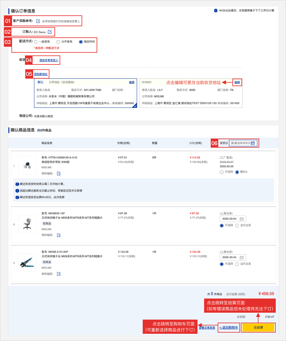 【订购】确认订购内容