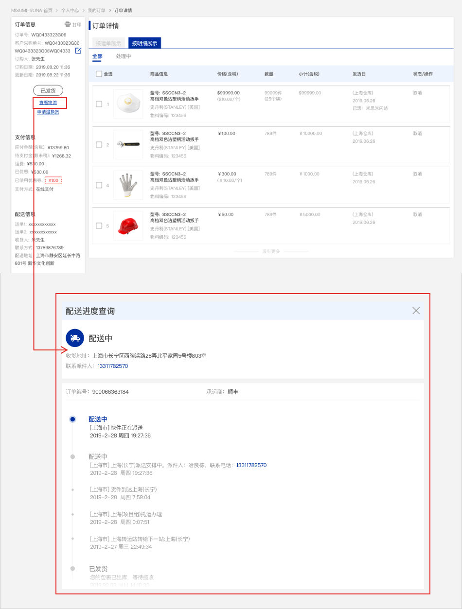 在我的订单页面,【已发货】的商品中,点击【查看详情】,页面跳转订单详情页。