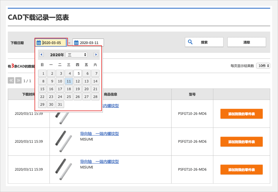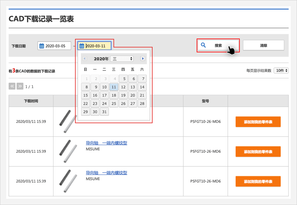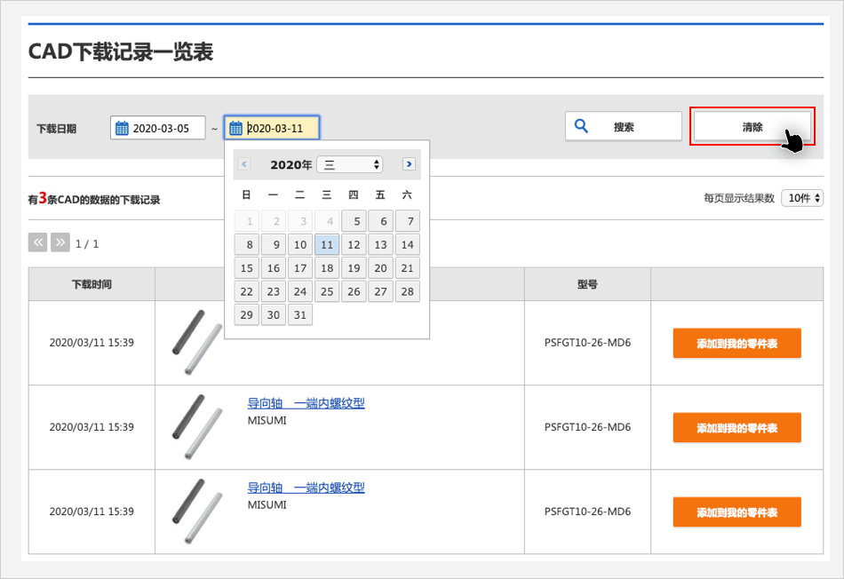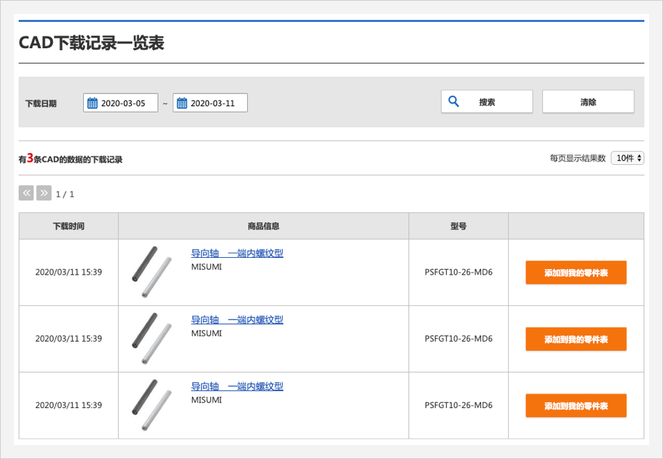 在CAD数据下载记录中,可以确认CAD数据下载一览。