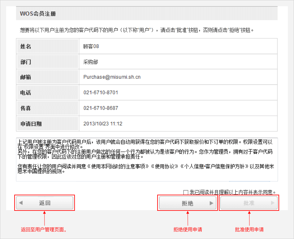 不允许该用户进行报价及订购操作时,请点击【拒绝】。
