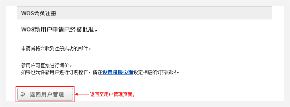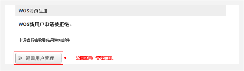 具有管理权限的用户,可在此页面进行 【批准】 或 【拒绝】 新用户的WOS使用申请。