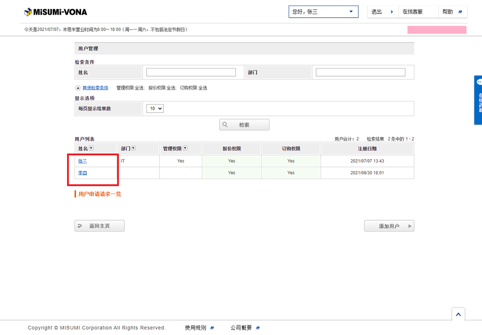1.点击米思米官网首页【我的米思米】-【个人中心首页】。