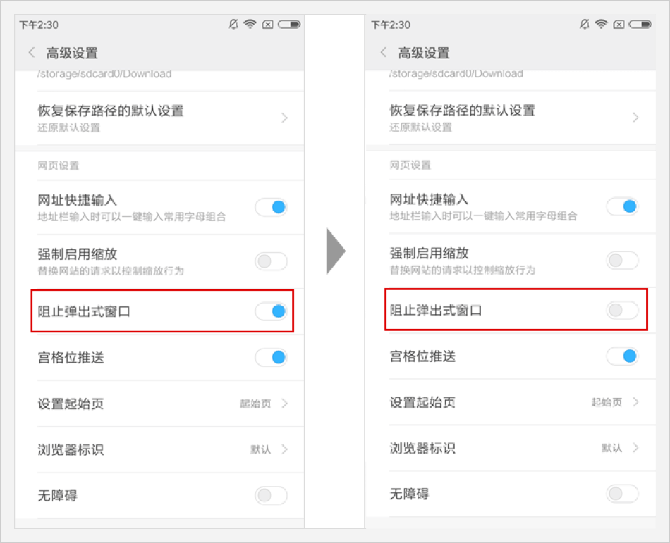 根据拦截提示进行设置