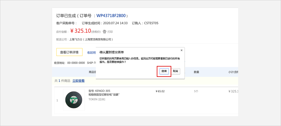 点击【继续】按钮 ⟹ 即可进行付款。