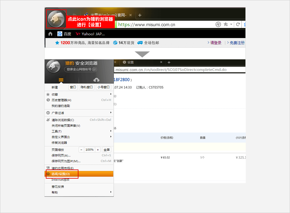 猎豹浏览器有2种设置方法: