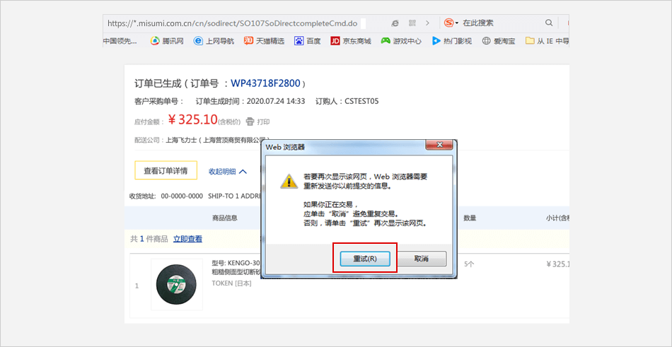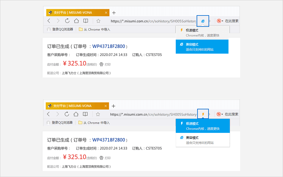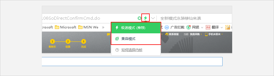 点击【付款】页面无反应 ⟹ 请在极速和IE模式之间切换后再次点击【付款】按钮。