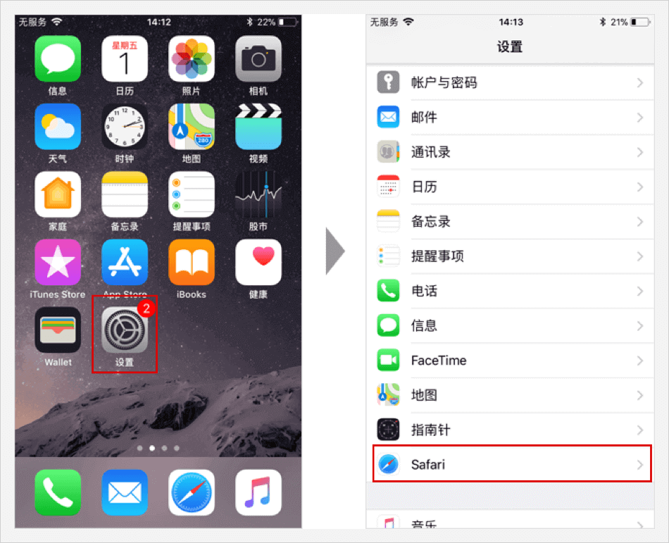 打开 【设置】 选项 ⟹ 点击并打开 【safari】 选项页面。