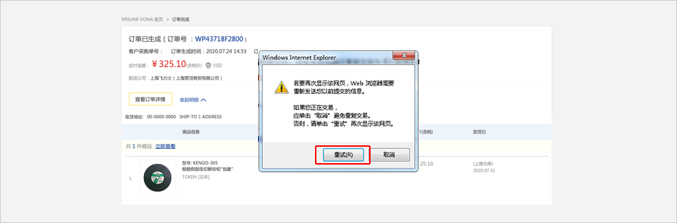 点击【重试】后即可进行付款。