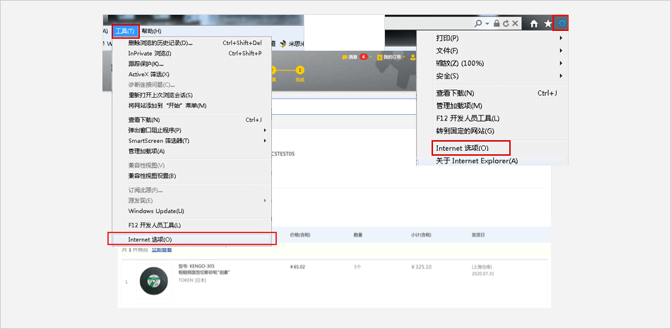 ;或点击右上角的设置图标 ⟹ 选择【Internet 选项】。