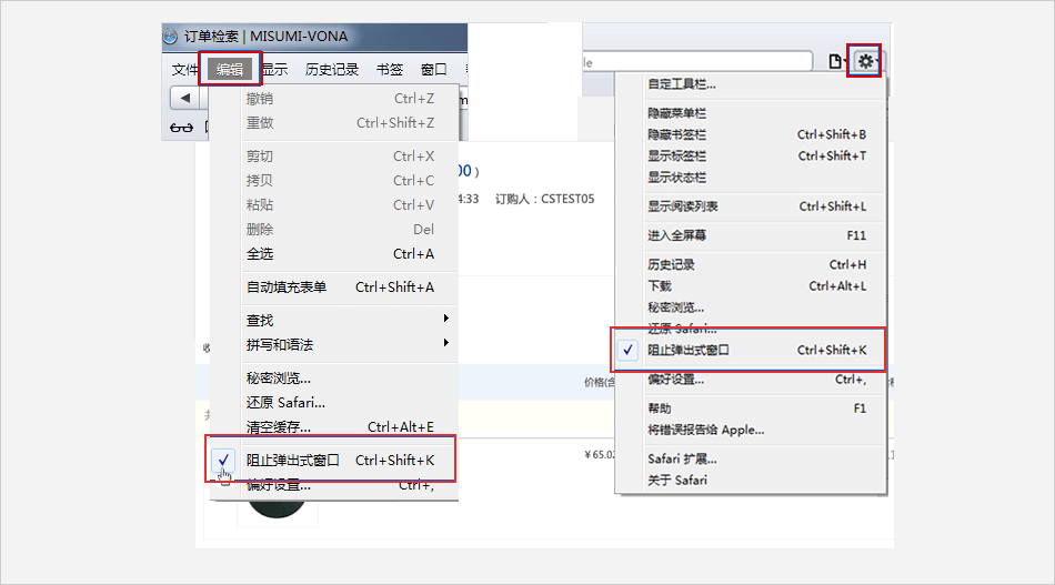 单击浏览器上方的【编辑】⟹ 点击【阻止弹出式窗口】 ,去除 √ 。或单击浏览器右上角的设置标志 ⟹ 将 【阻止弹出式窗口】 前的 √ 去掉。