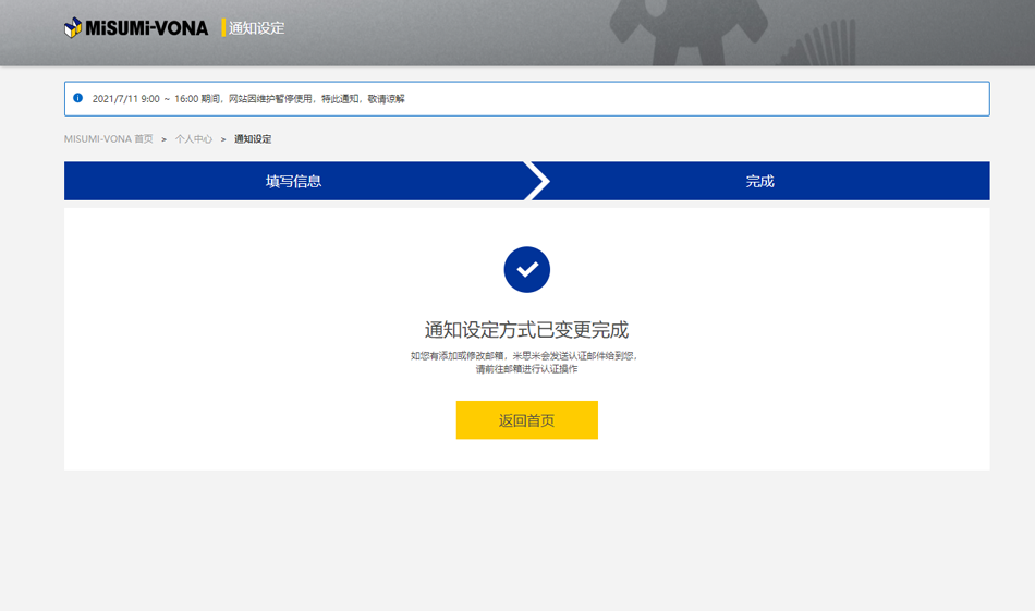 1.点击米思米官网首页【我的米思米】-【个人中心首页】。