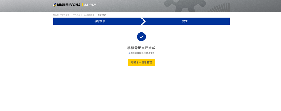绑定手机号码成功后,可用手机号码作为用户名登录米思米官网。