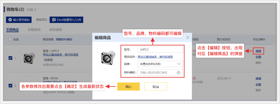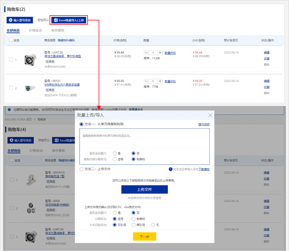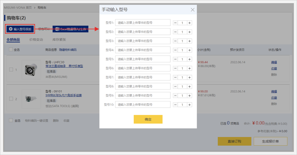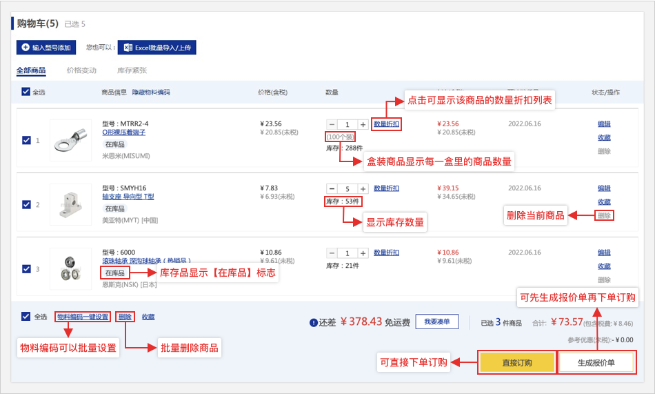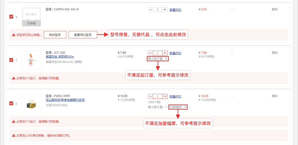 ※图例中所显示的价格信息均为样例,实际商品价格请在米思米网站上再次确认