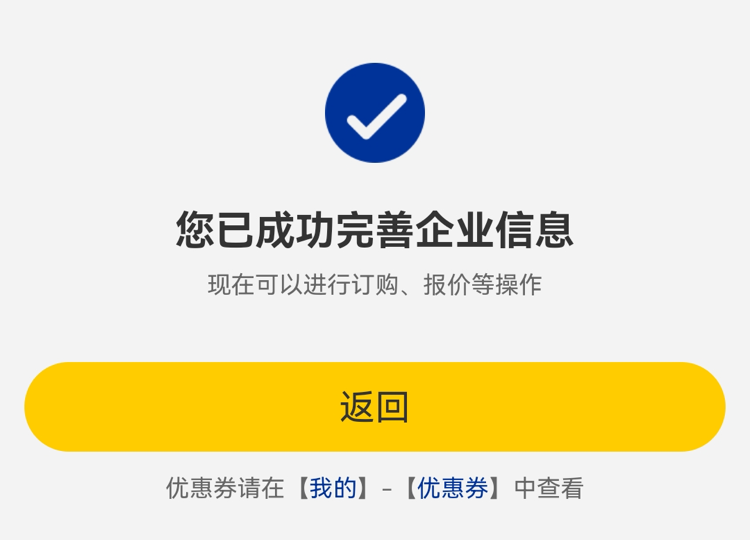 注意事项:除了以上入口可以完善企业信息外,在商品详情页点击【立即订购】之后、个人用户进入【购物车】页面、个人用户进入【个人中心首页】、个人中心的【企业信息管理】页面都有入口可帮助您完善企业信息。