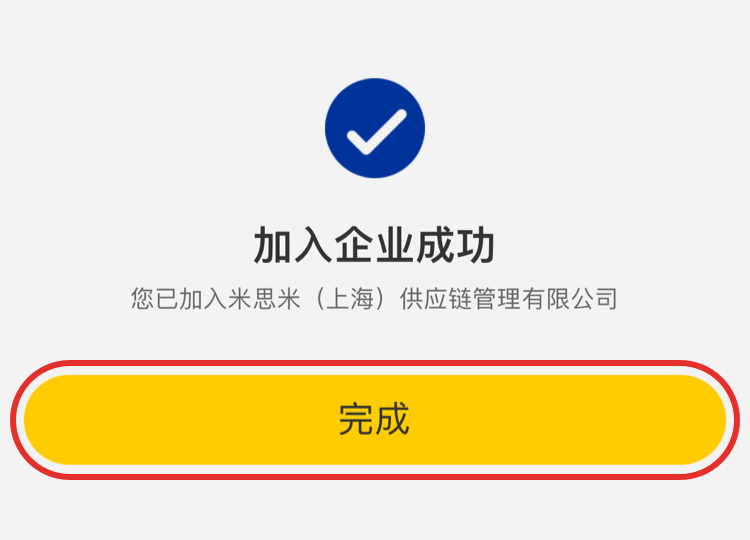 3.加入企业成功,您已成为企业用户,您可点击【完成】回到首页。